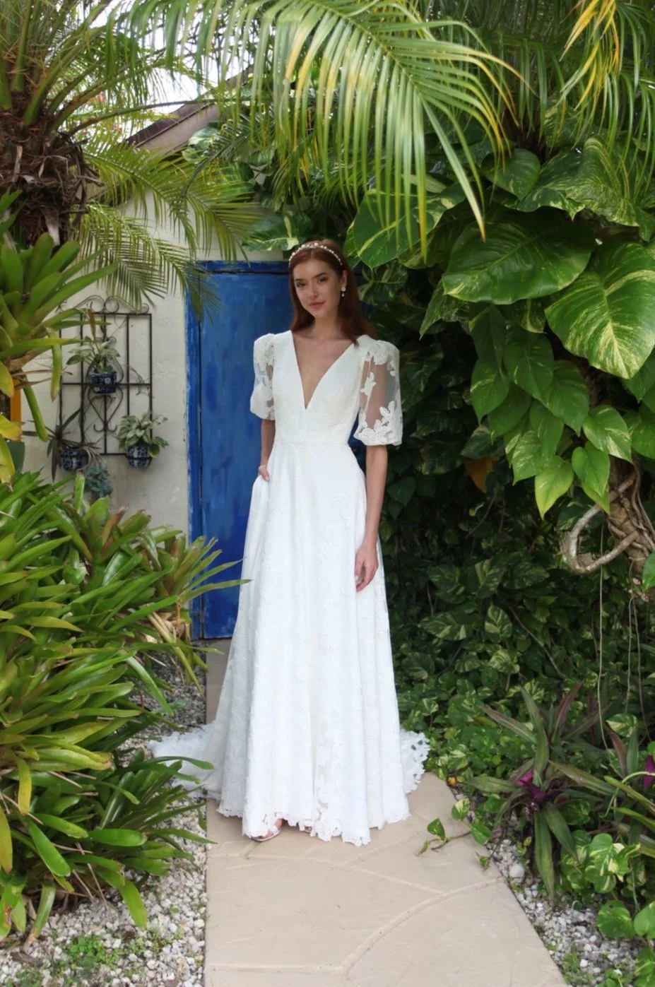 LUCA V-neck sequined lace a-line wedding dress with 3/4 length puff sleeves and covered buttons to the end of the train Sign up View fullsize View fullsize View fullsize